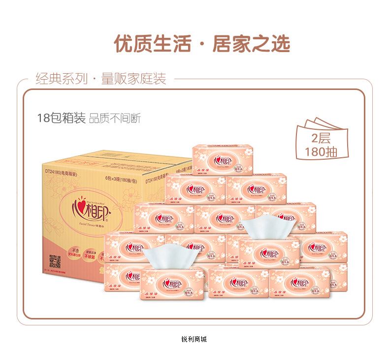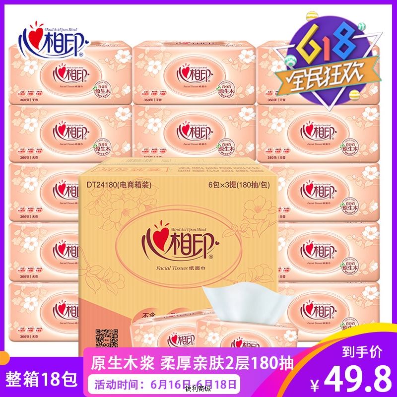 - 618!心相印家用软抽纸DT24180婴儿抽纸面巾餐巾纸批发180抽整箱18包
