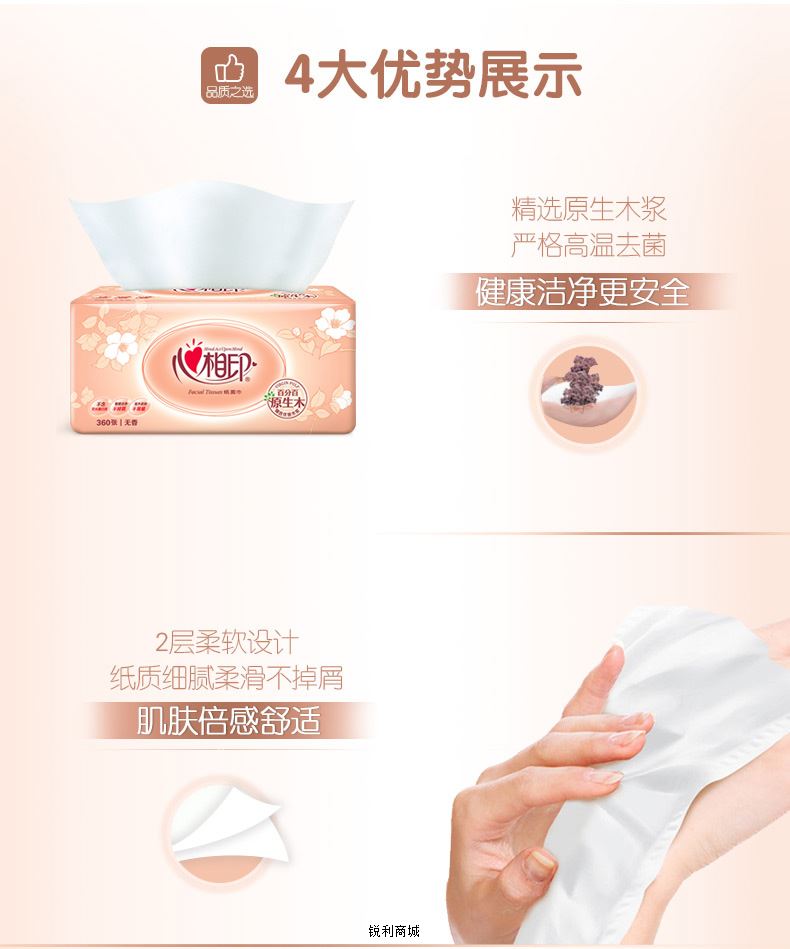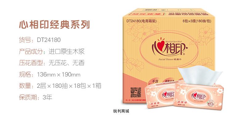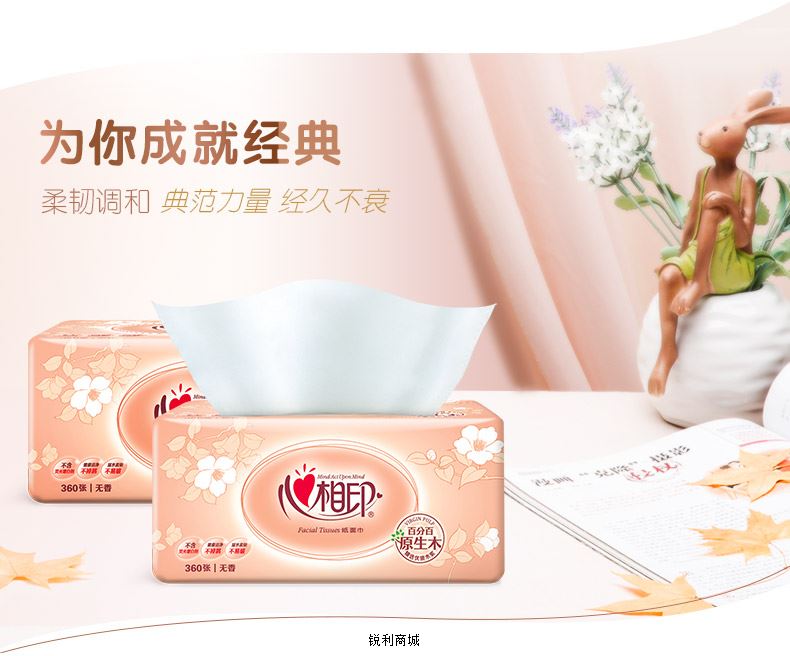 - 心相印抽纸红悦系列130抽三层 心相印纸巾面巾纸抽5提30包DT37130