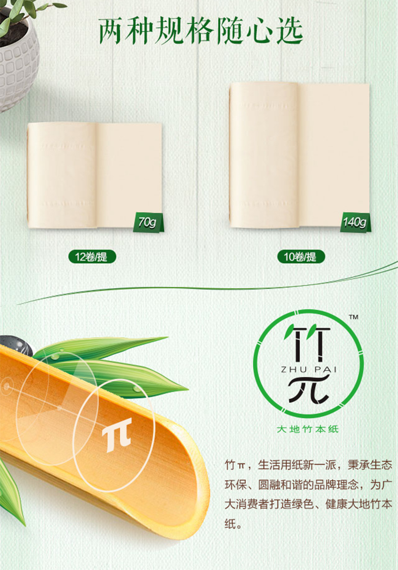 - 心相印竹浆本色纸三层无芯卷纸卫生纸厕纸ZLR070竹兀原纸70克36卷