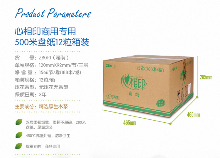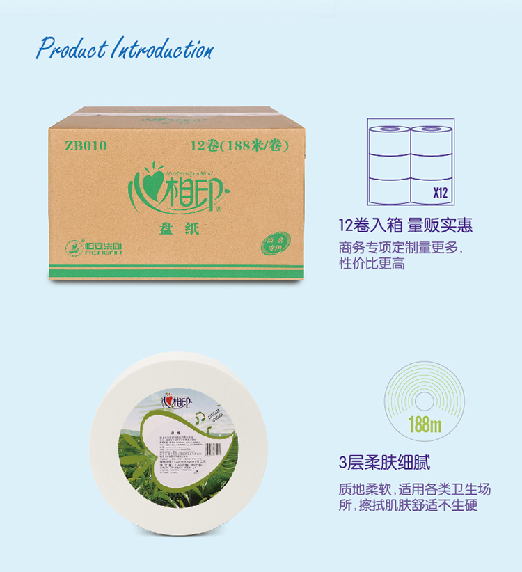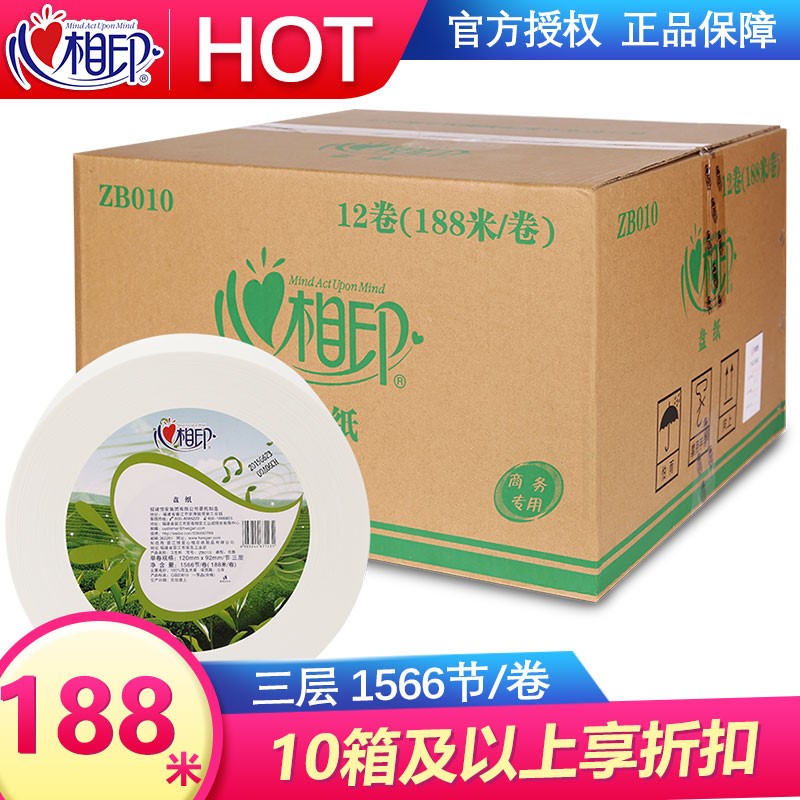 - 心相印ZB010大盘卷纸3层188米12卷整箱公共厕所纸卫生手纸巾批发