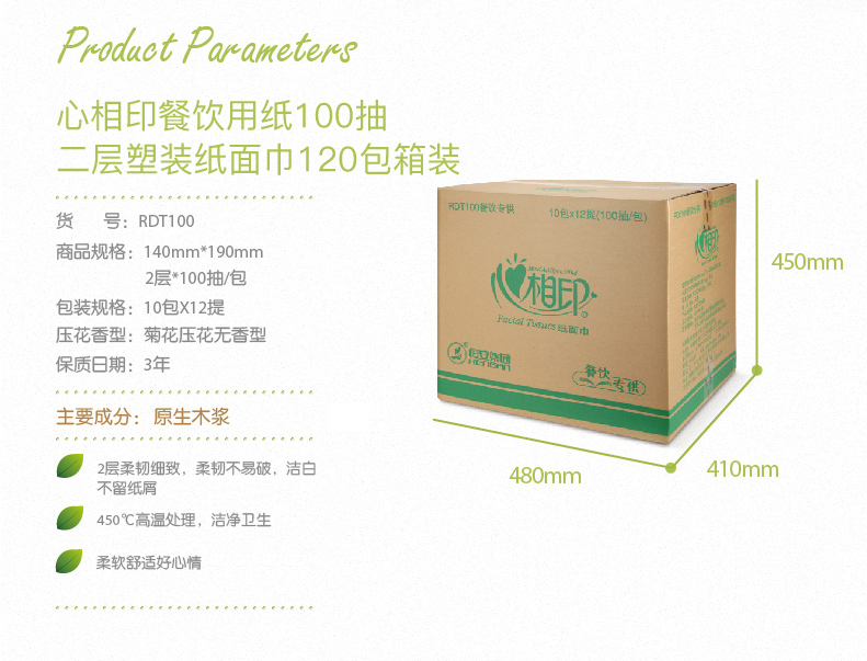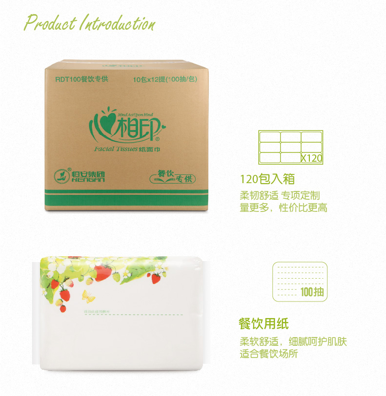 - 心相印抽纸 RDT100双层印花面巾纸120包酒店餐饮商务餐巾纸卫生纸