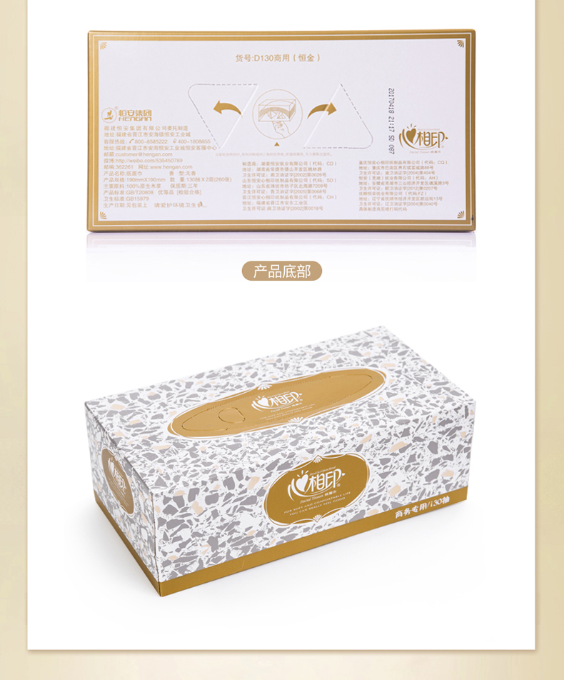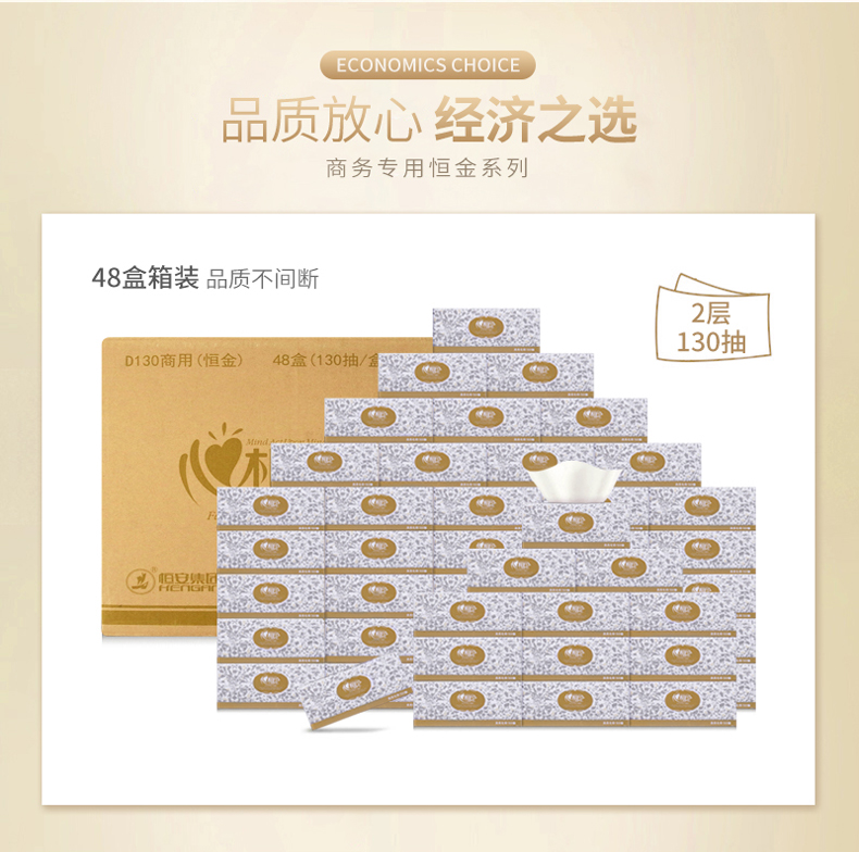 - 心相印抽纸硬盒抽纸巾D130商务130抽双层盒装纸面巾餐巾纸3提48盒