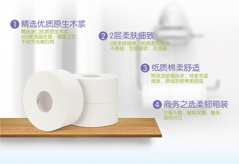 - 心相印大盘纸 ZB016双层240米12卷商务大卷纸酒店卫生间厕所厕纸
