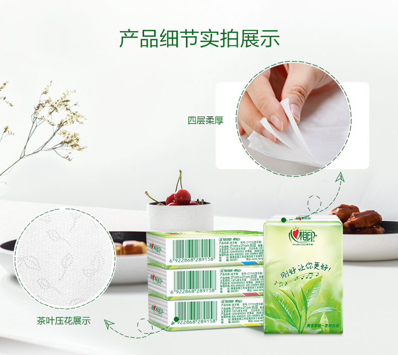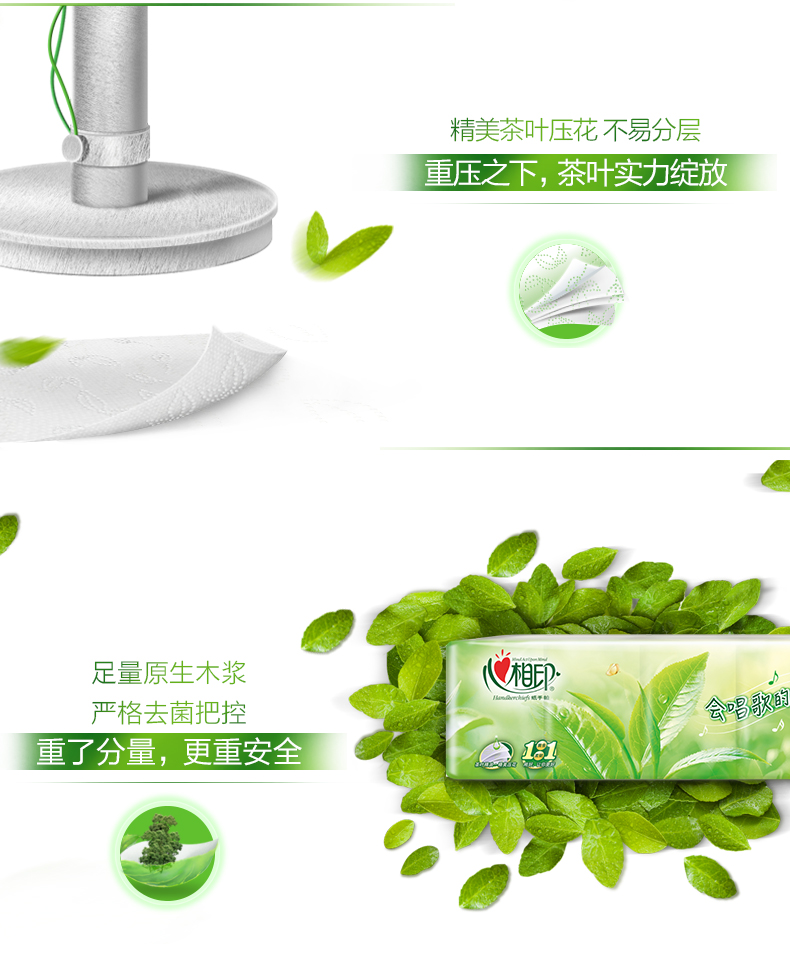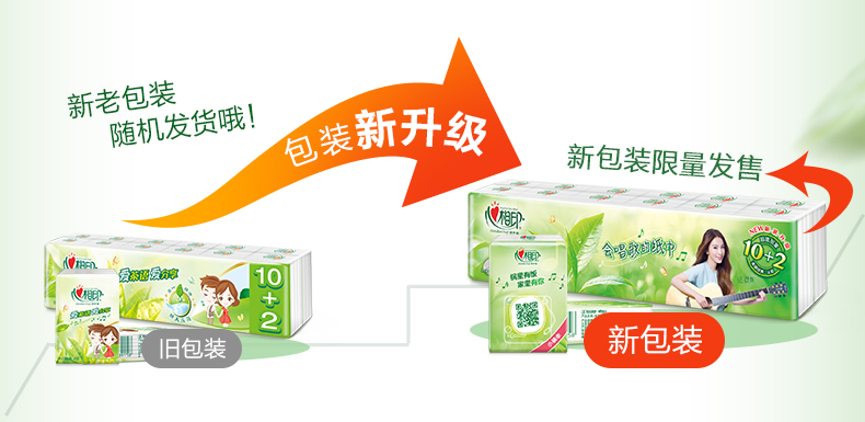 - 心相印BT2010茶语无香卷纸四层卫生纸手纸送抽纸2提20卷送抽纸2包