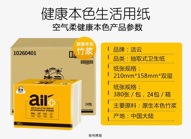 - 洁云本色平板纸380张6包整箱批发家用刀切纸卫生手纸原色厕所草纸