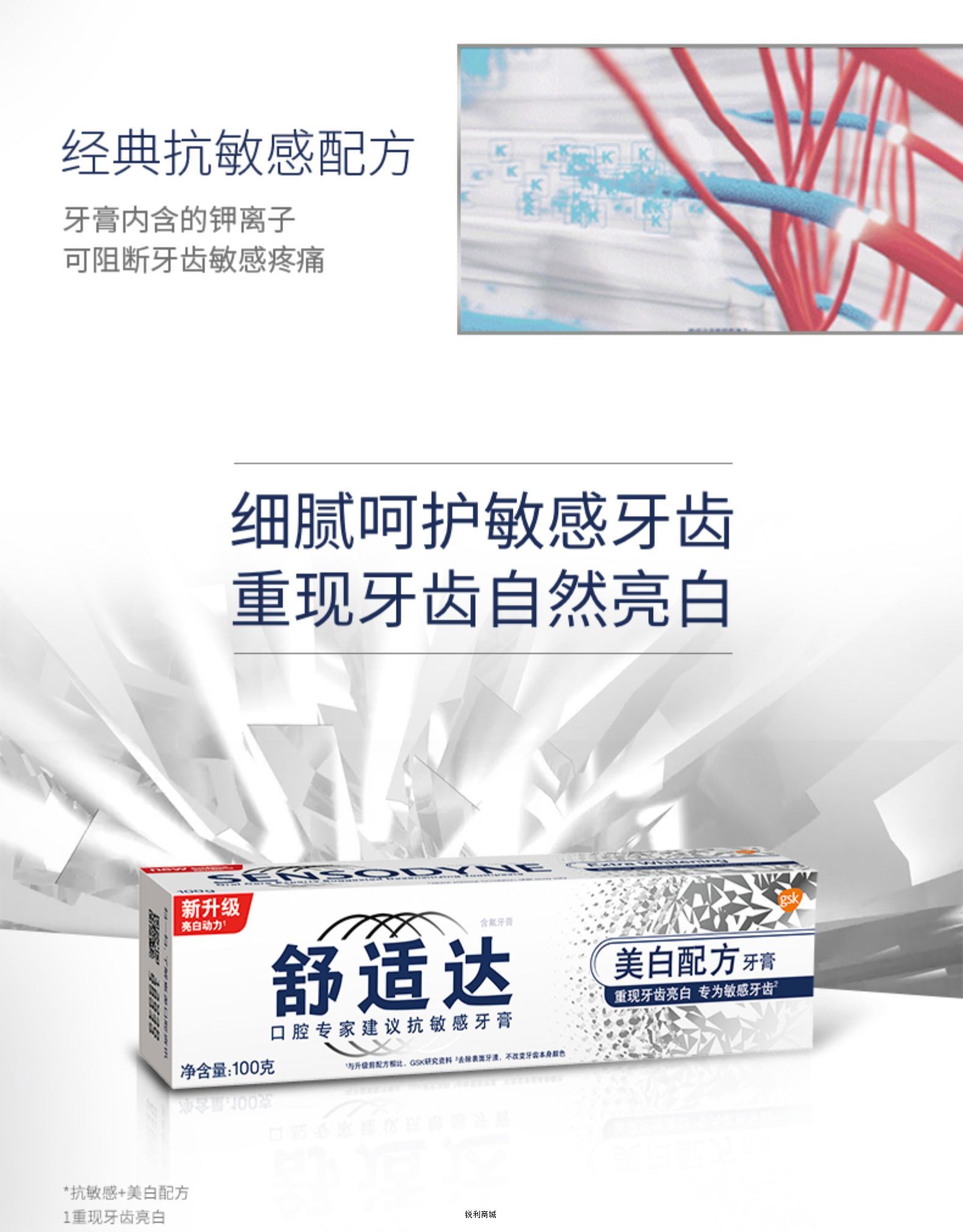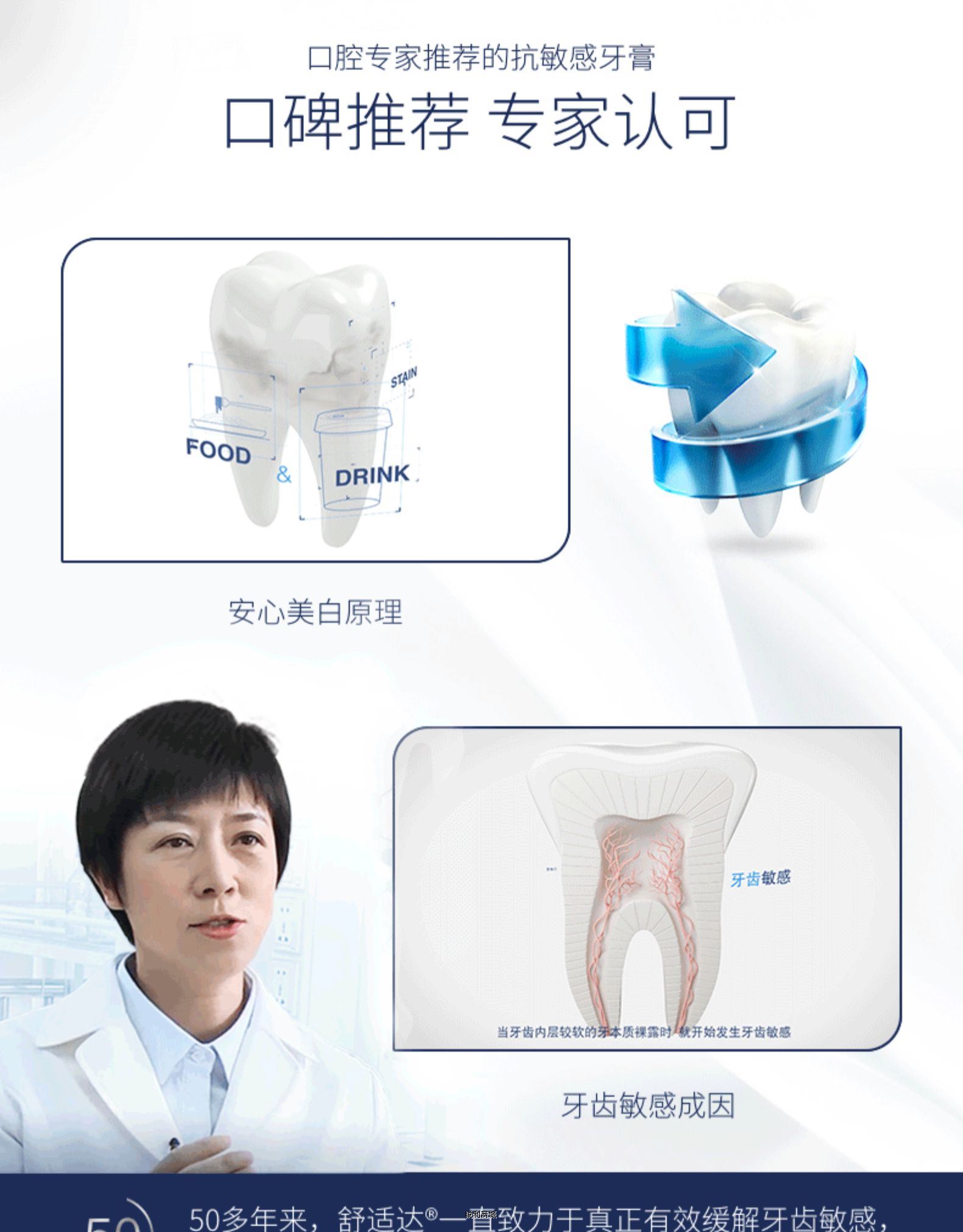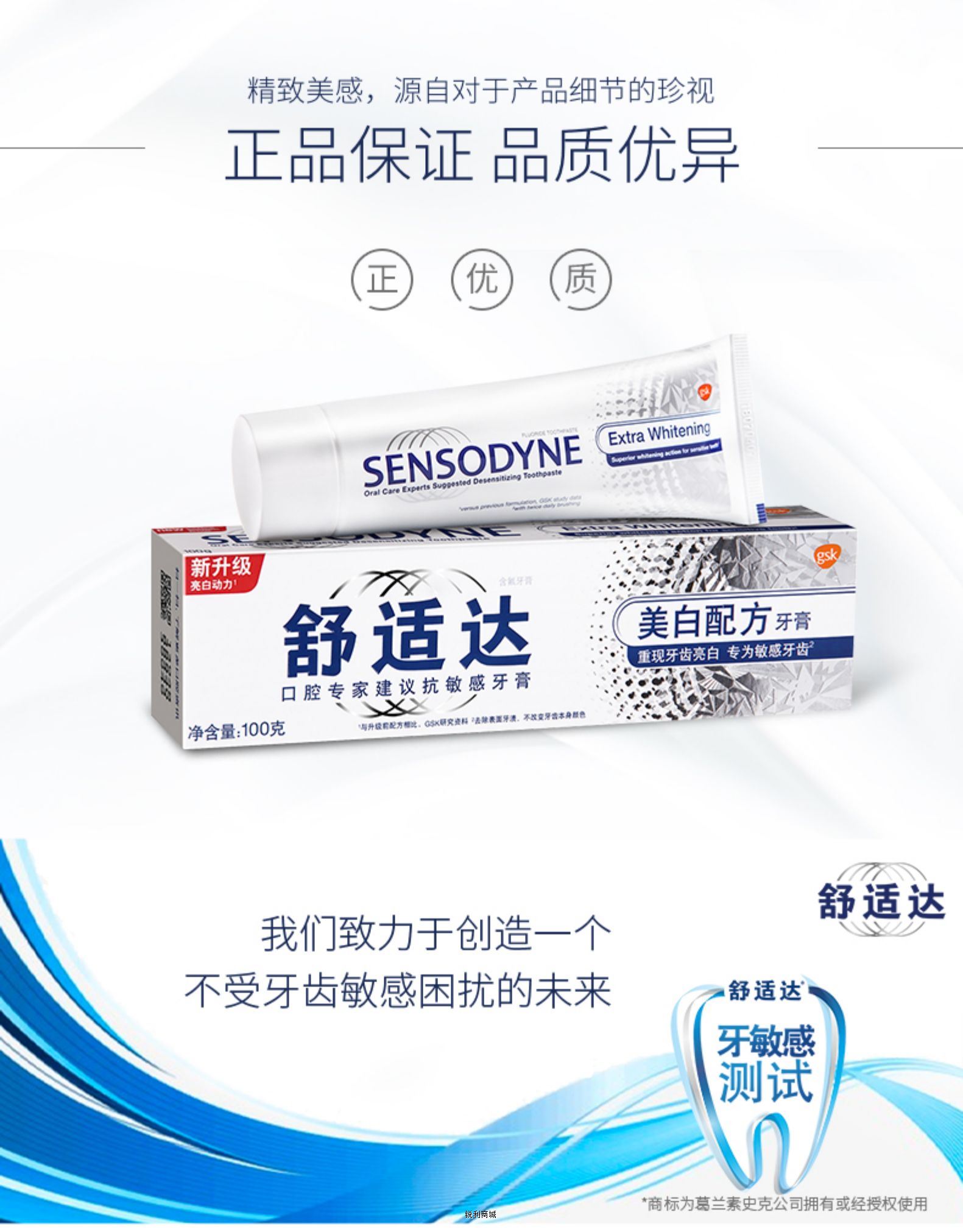 - 【满88包邮】陈伟霆同款舒适达安心美白抗敏感牙膏100g去黄去烟渍亮白牙齿清洁
