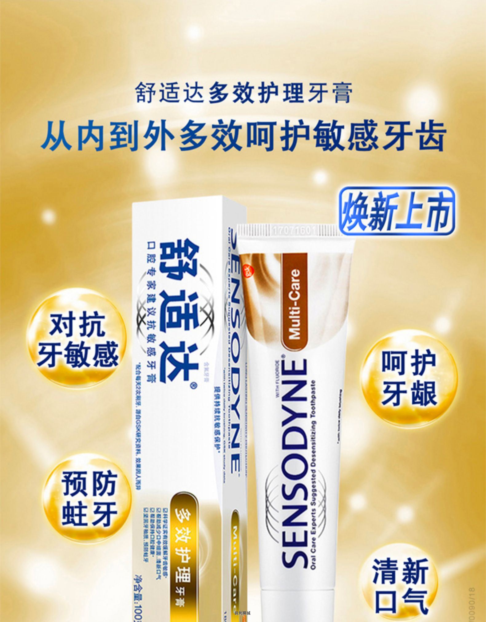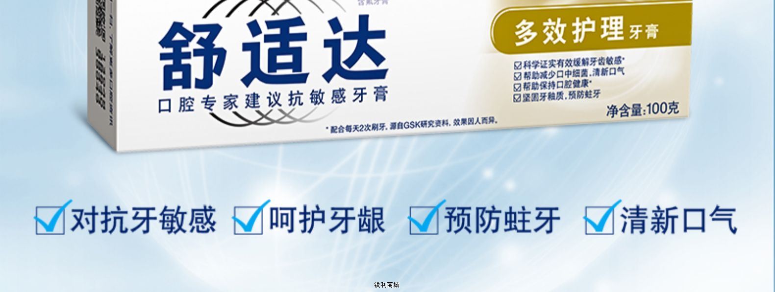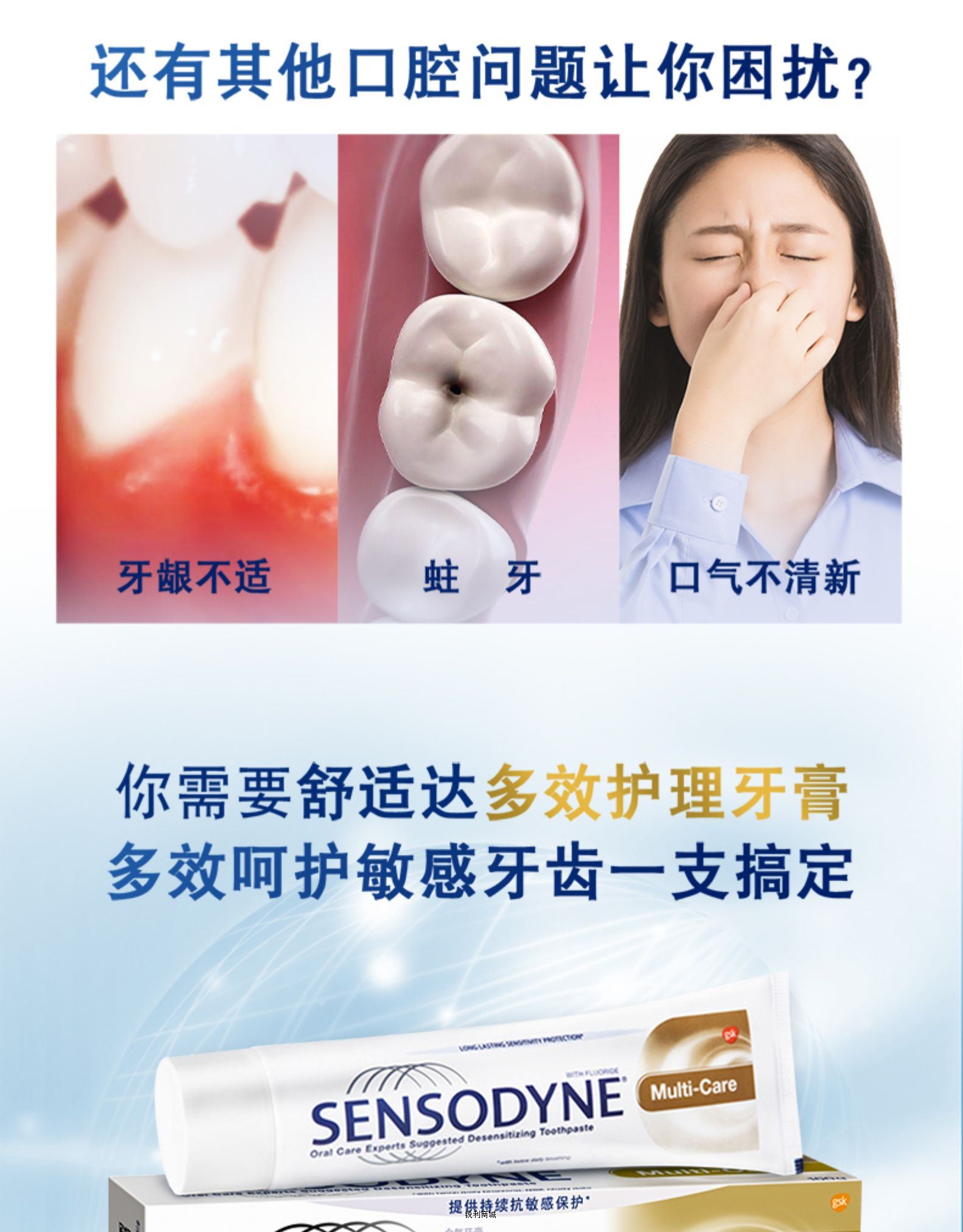 - 【满88包邮】陈伟霆同款舒适达多效护理抗敏感牙膏100g防蛀健齿缓解牙敏感清洁
