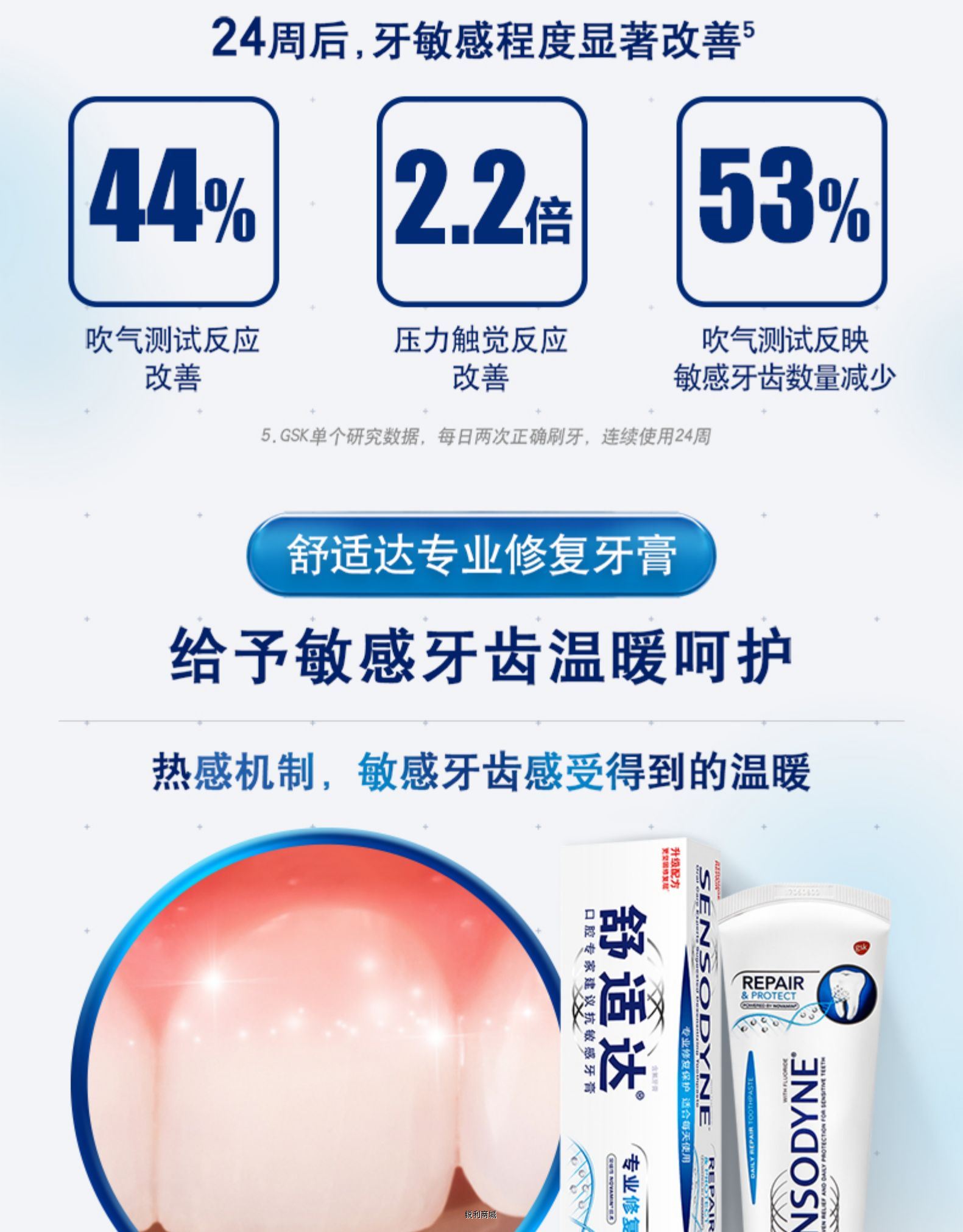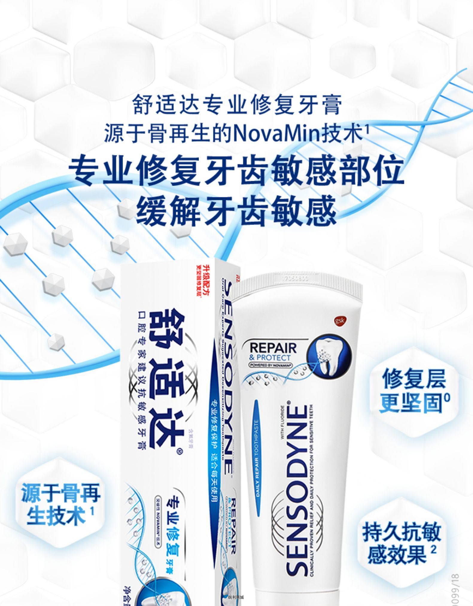 - 【满88包邮】陈伟霆同款舒适达专业修复抗敏感牙膏100g单支护龈缓解牙敏感清洁
