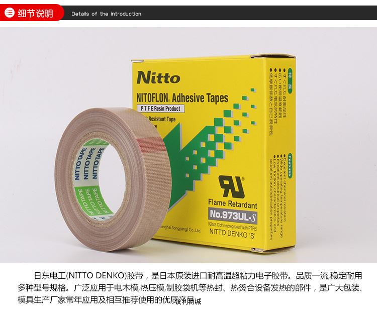 日东电工(NITTO DENKO)胶带,是日本原装进口耐高温超粘力电子胶带。品质一流,稳定耐用,多种型号规格。广泛应用于电木模,热压模,制胶袋机等热封、热烫合设备发热的部件 ,是广大包装、模具生产厂家常年应用及相互推荐使用的优质产品。