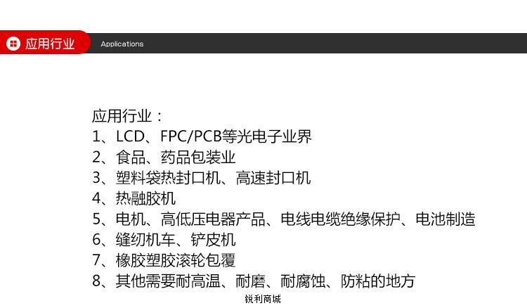 适用范围:用于耐热,遮蔽;热密封;耐热电器绝缘;