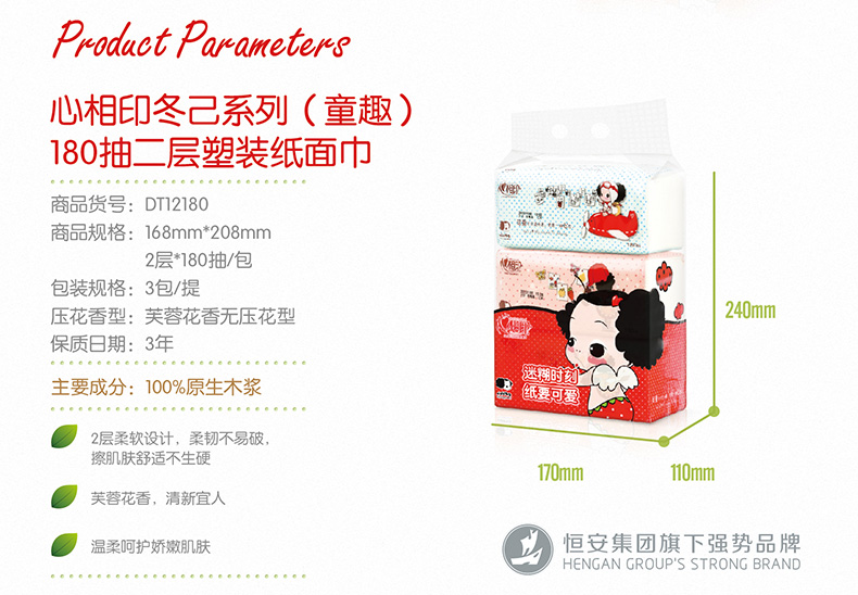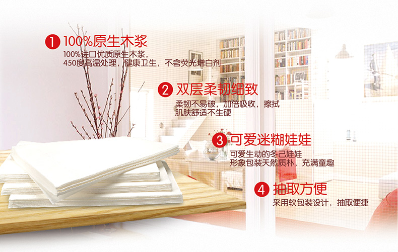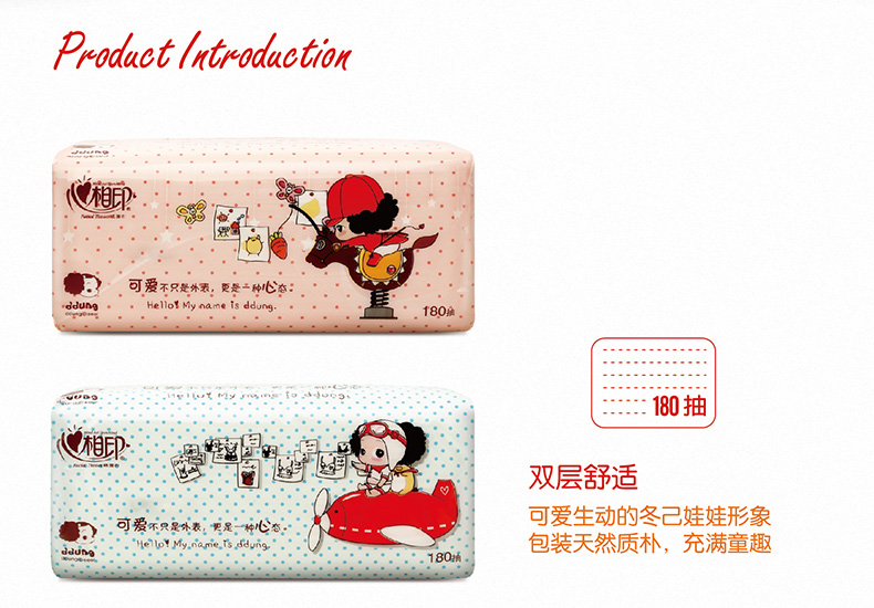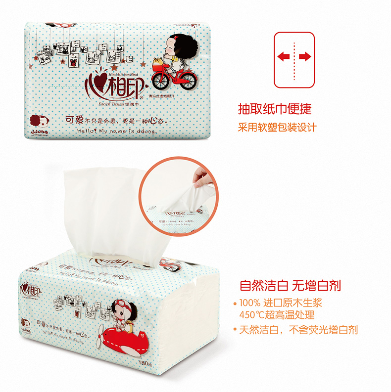 - 心相印抽纸DT12180 冬己系列可爱版2层塑装面巾纸180抽4提装包邮