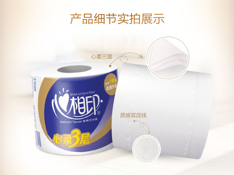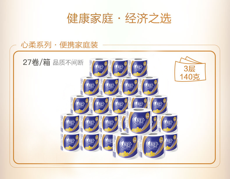 - 心相印卷纸特柔3层140g心心相印卫生纸有芯卷纸厕纸27卷BT910