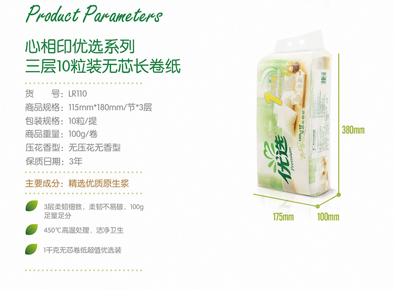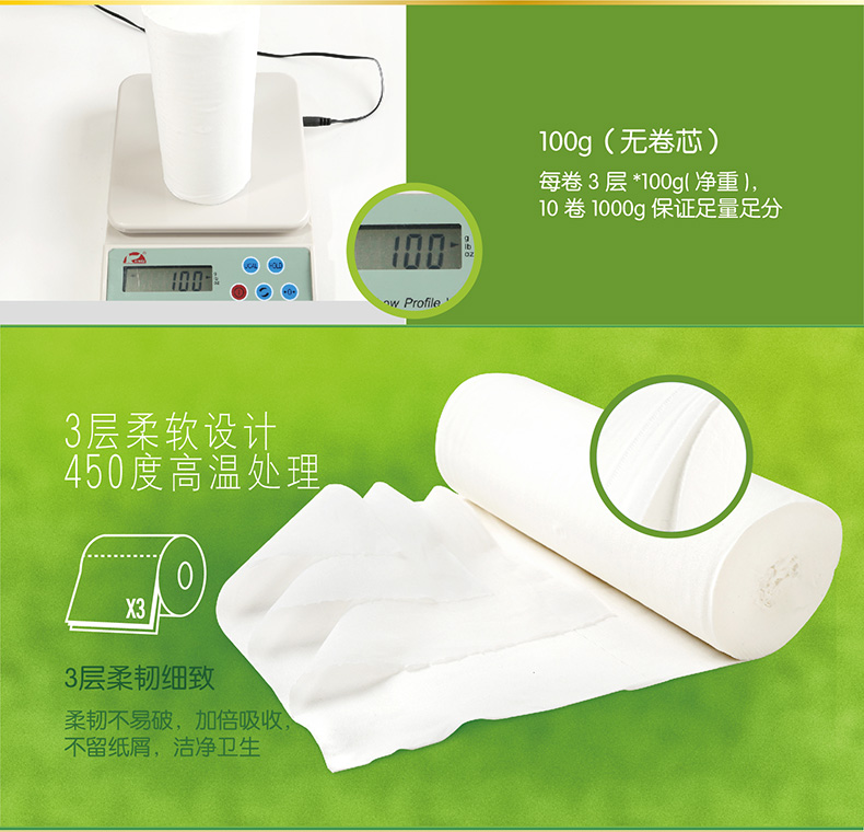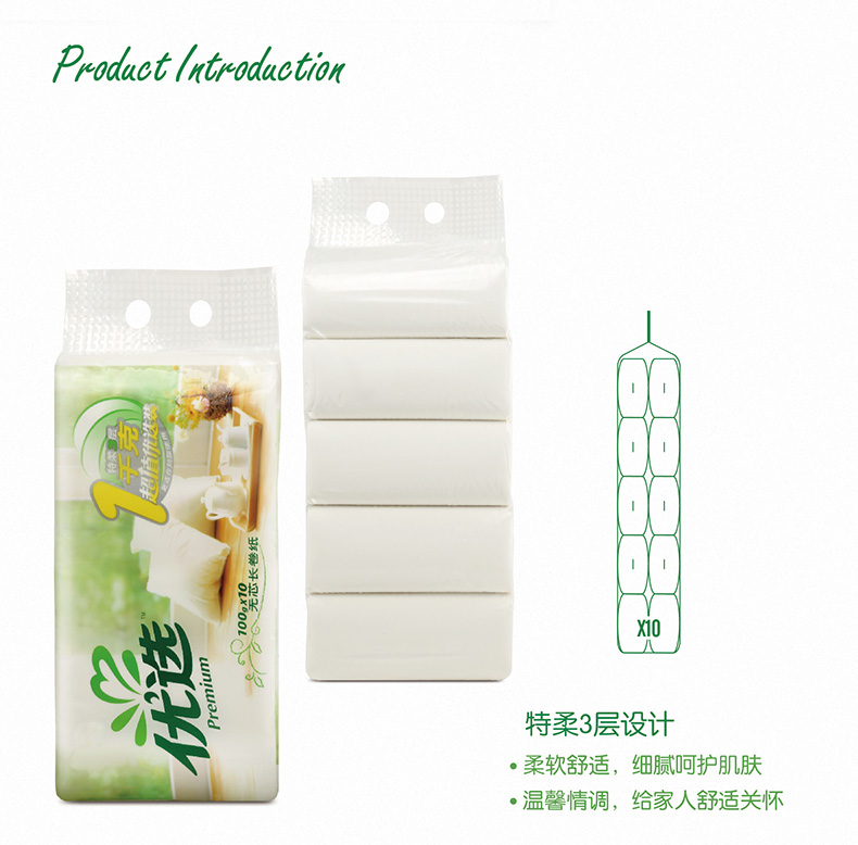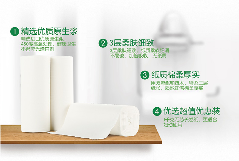 - 心相印卷纸卫生纸优选LR110三层1千克无芯长卷无香味3提装