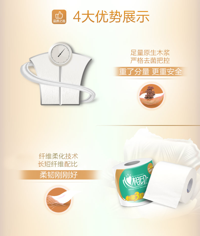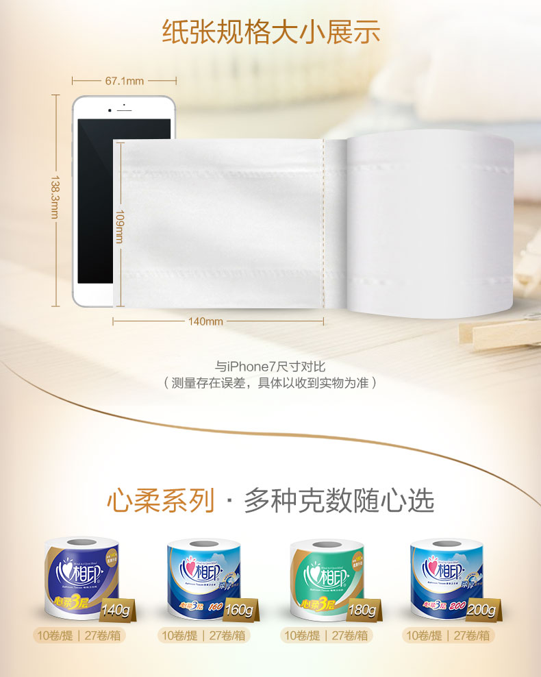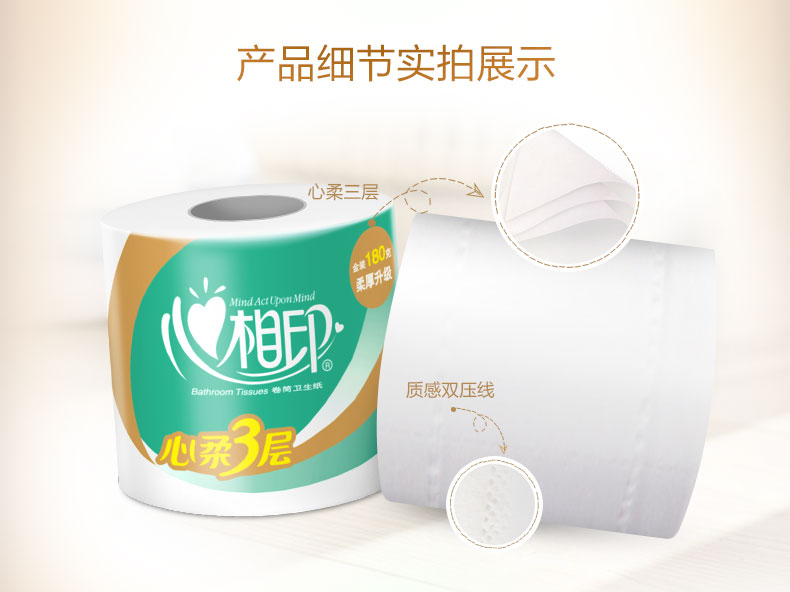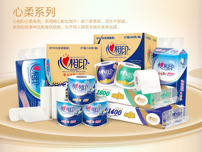 - 心相印卷纸卫生纸BT1610 柔肤系列婴儿用纸180克27粒装三层