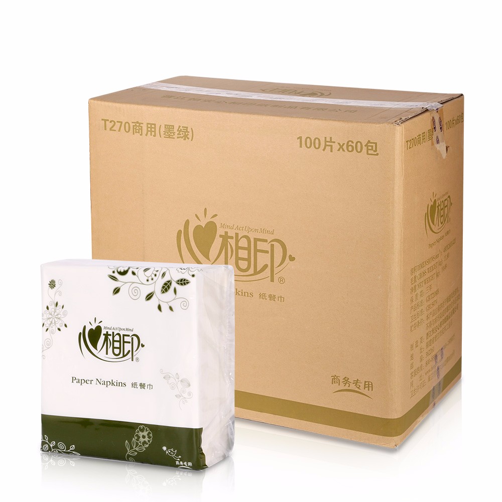 - 心相印商务纸方块餐巾纸T270 面巾纸原生木浆单层100片60包/箱