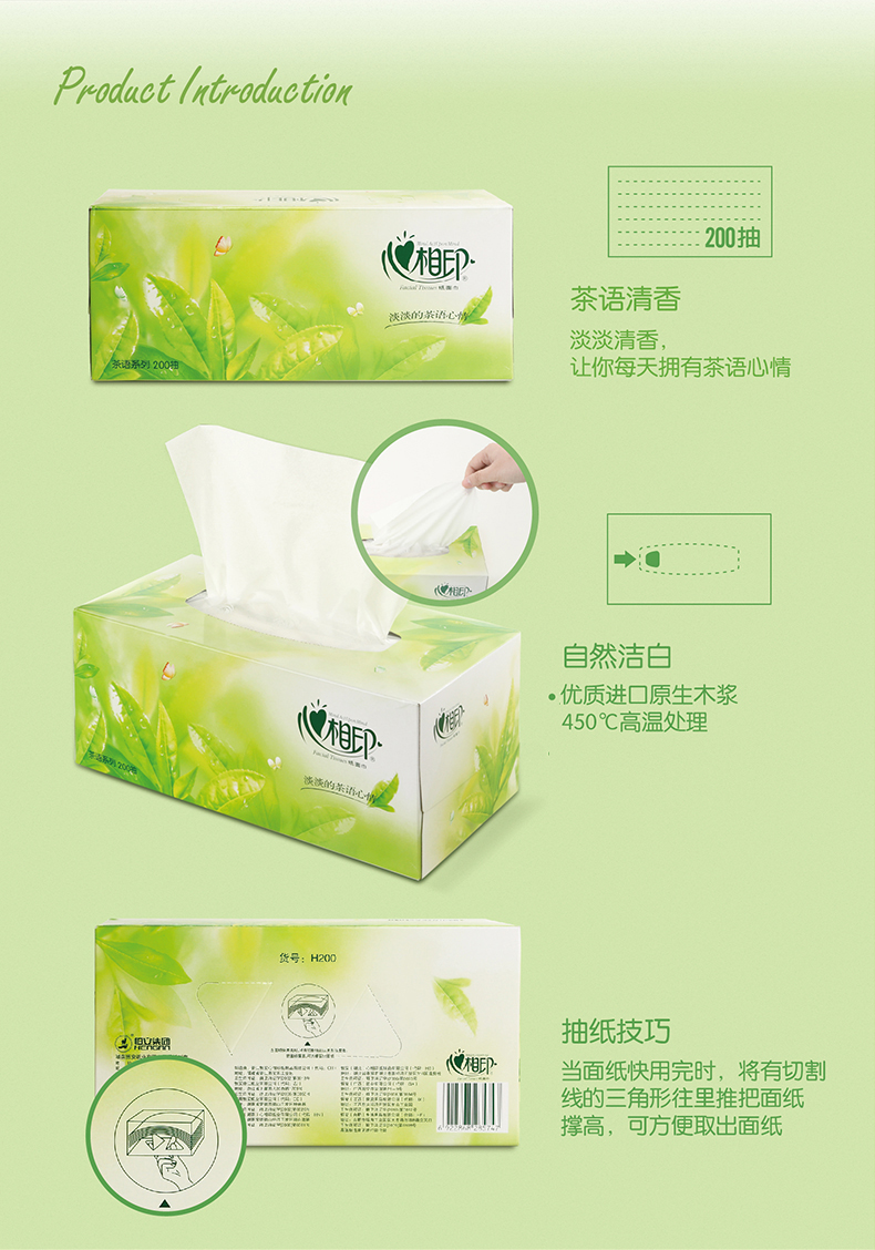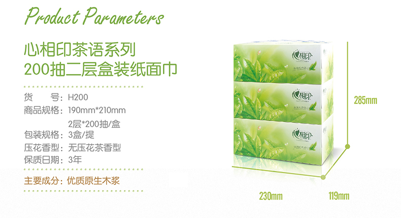 - 心相印茶语系列H200盒装抽纸抽取式纸巾面巾纸二层200抽3提9盒